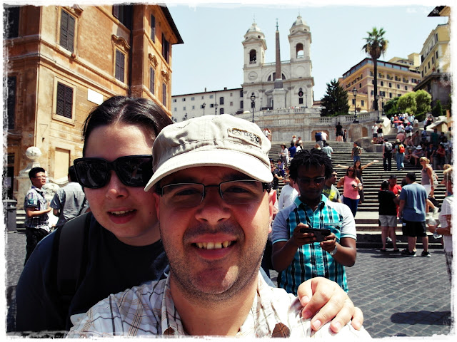 O que não falta em Roma são praças... Seguimos para mais uma aplamanete conhecida pelos desfiles de moda... A Piazza di Spagna é um dos locais mais deslumbrantes na cidade de Roma. Ponto de encontro diurno e noturno de romanos e turistas, tem uma escadaria monumental que levam à igreja de Trinità dei Monti. A construção da escadaria deve-se ao arquiteto Francesco de Sanctis. A fonte no centro da praça é conhecida pelos romanos por La Barcaccia, ou velha banheira. É atribuída a Gian Lorenzo Bernini ou ao seu pai Pietro Bernini e foi feita em 1627 - 1629. Segundo dizem esta foi inspirada pela chegada à praça de um barco durante a inundação do rio Tibre 1598.